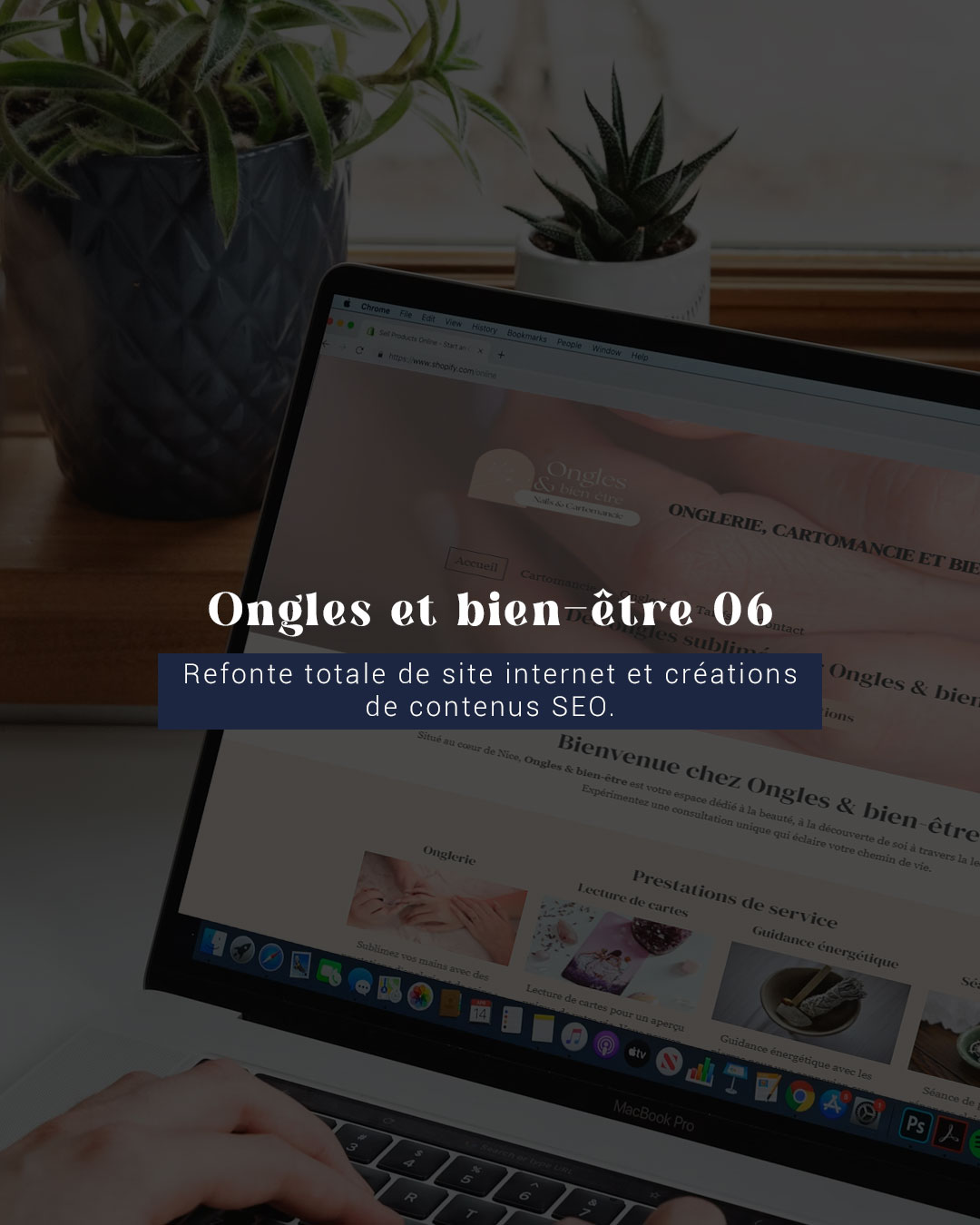 Accompagnement et social média management, refonte de site, création de site, création d’identité visuelle, rédaction d’articles de blog ou accompagnement en réécriture SEO.